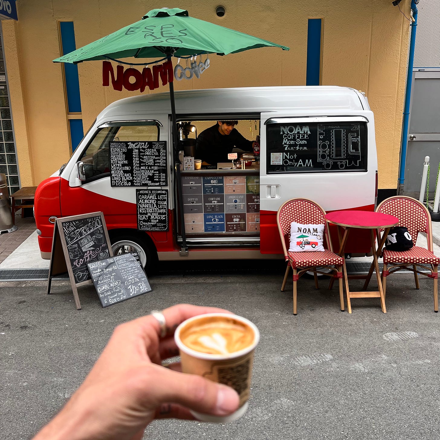 Drinking: I luckily found the best cortado of the trip on our very last morning at the cutest little coffee van: NOAM