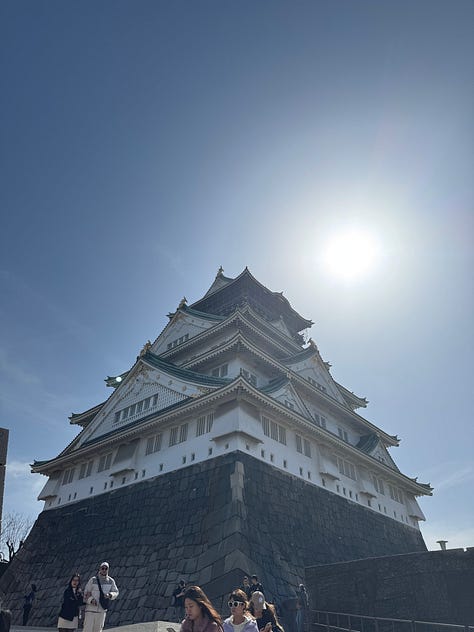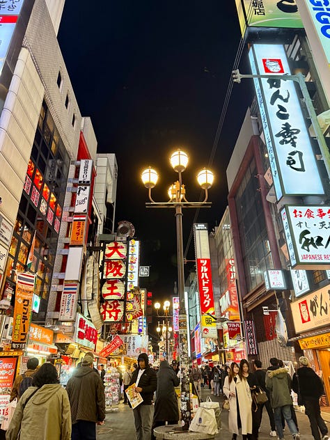 Experiences: Dotonbori at night, Osaka Castle, Namba Yasaka Shrine, and Nakazakicho: a neighborhood that miraculously survived the countless air raids of WWII..