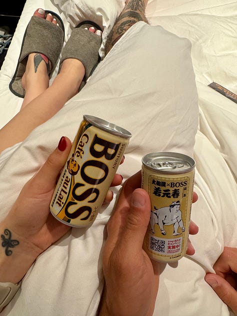 Drinking: On day 1, we officially started our canned coffee addiction for the entirety of the trip thanks to the amazing vending machines near us at all times.. you already know we had to start it off with a can of Suntory BOSS Cafe Au Lait in honor of our favorite film character Hirayama from Perfect Days..